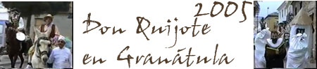 En el año 2005, año en el que se conmemora el IV Centenario de la publicación del Quijote, en Granátula celebramos esta efeméride con el inmortal caballero y su escudero, con Sanchica, molinos, posaderos y posadera, el cura, etc... de paseo por las calles Granatuleñas. ¿Increible? Solo tienes que pulsar en el presente vídeo y podrás como con Cervantes al frente en el año 2005, Don Quijote vuelve a lomos de Rocinante, ¡vuelve! en su ruta por Granátula tal y como hiciera en el libro en la batalla de los Galeotes.