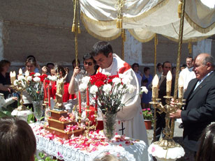 , festividad primaveral en los albores del verano. Olor a tomillo, hinojo regado por las calles de la villa por donde pasará el circuito procesional. Altares contruidos con imágenes. Cofradías que los visten con una representación de sus imágenes titulares. Altares populares engalanados por el buen saber y hacer de las manos granatuleñas.