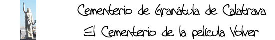 El cementerio de Granátula de Calatrava se ha hecho famoso por su presencia en la película Volver de Pedro Almodóvar. Desde www.granatula.net te invitamos a conocer el cementerio granatuleño con un banco de fotografías, dos visitas virtuales con fotografías panorámicas circulares y a leer el artículo que publicó el Períodico La Tribuna.